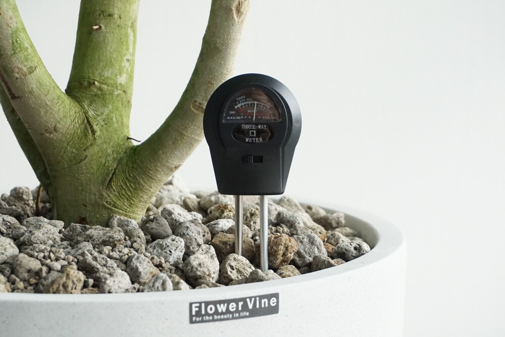 무동력 측정기를 이용하여 현재 화분 속 상태(수분, 산성도/일조량)를 체크해 볼 수 있습니다.