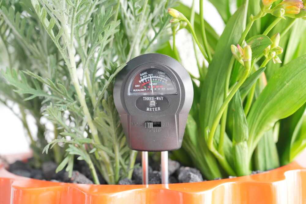 무동력 측정기를 이용하여 현재 화분 속 상태(수분, 산성도/일조량)를 체크해 볼 수 있습니다.