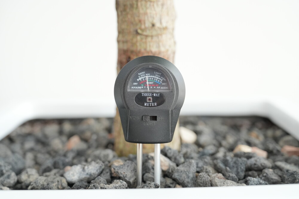 무동력 측정기를 이용하여 현재 화분 속 상태(수분, 산성도/일조량)를 체크해 볼 수 있습니다.
