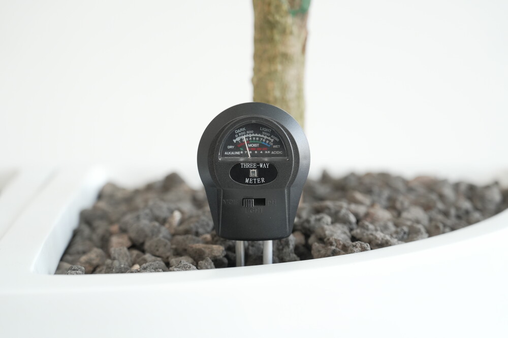 무동력 측정기를 이용하여 현재 화분 속 상태(수분, 산성도/일조량)를 체크해 볼 수 있습니다.