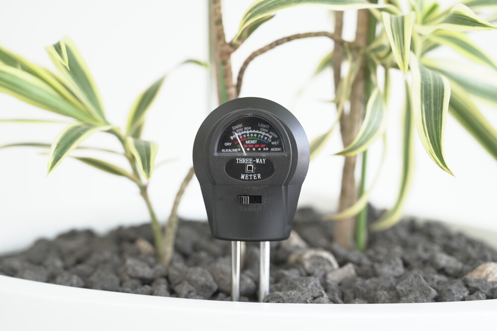 무동력 측정기를 이용하여 현재 화분 속 상태(수분, 산성도/일조량)를 체크해 볼 수 있습니다.