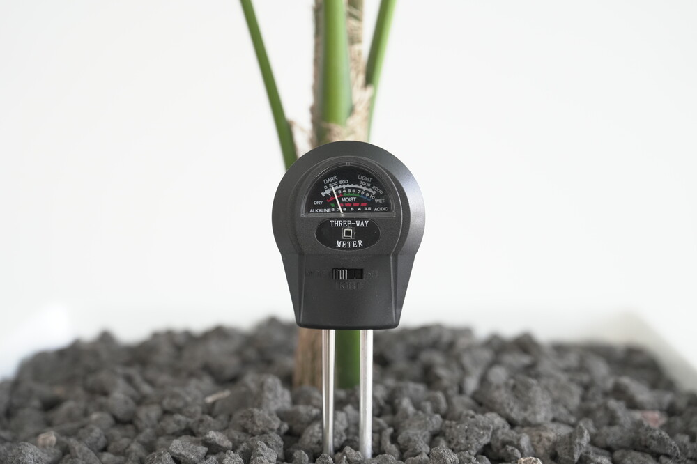 무동력 측정기를 이용하여 현재 화분 속 상태(수분, 산성도/일조량)를 체크해 볼 수 있습니다.