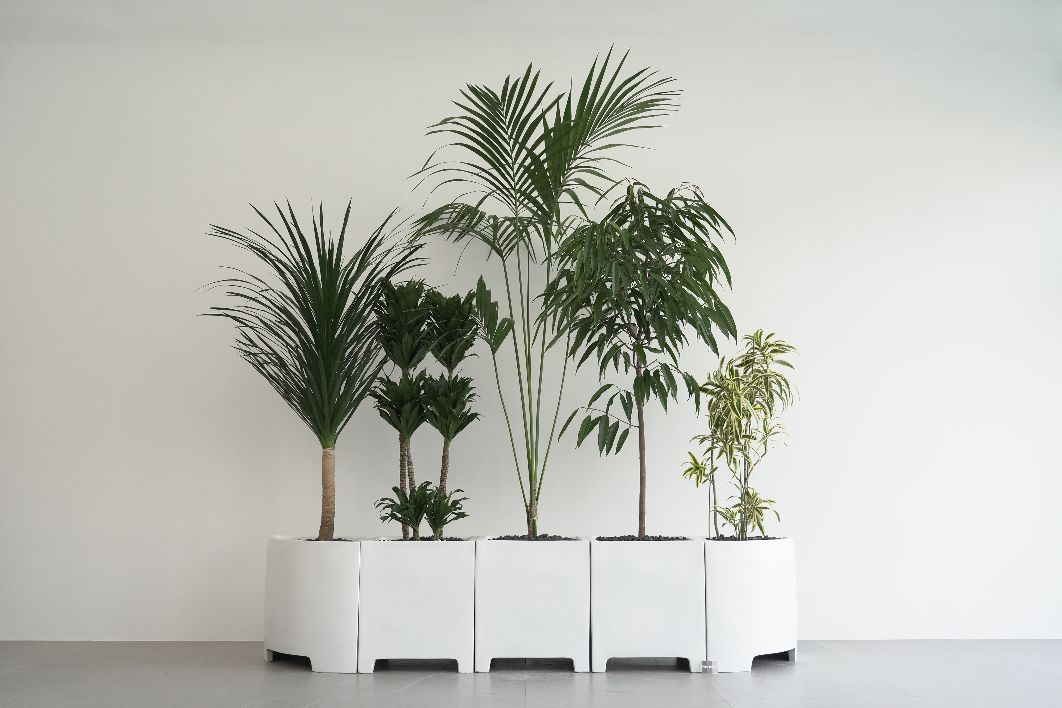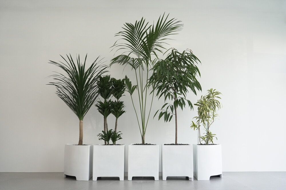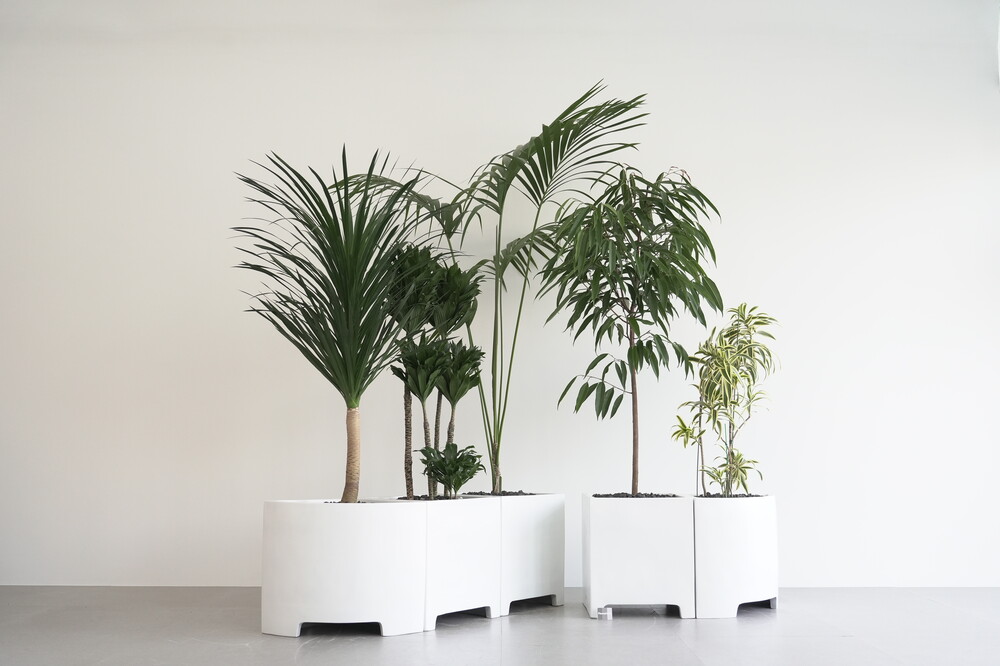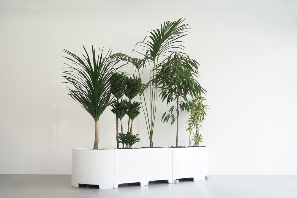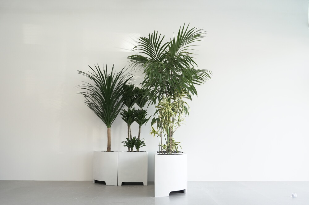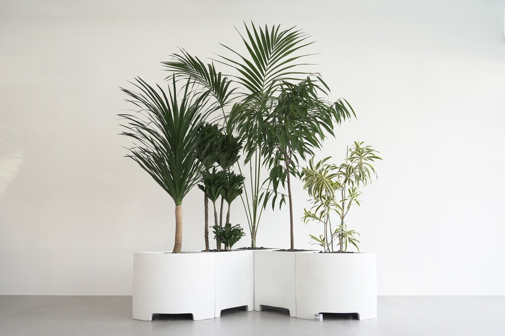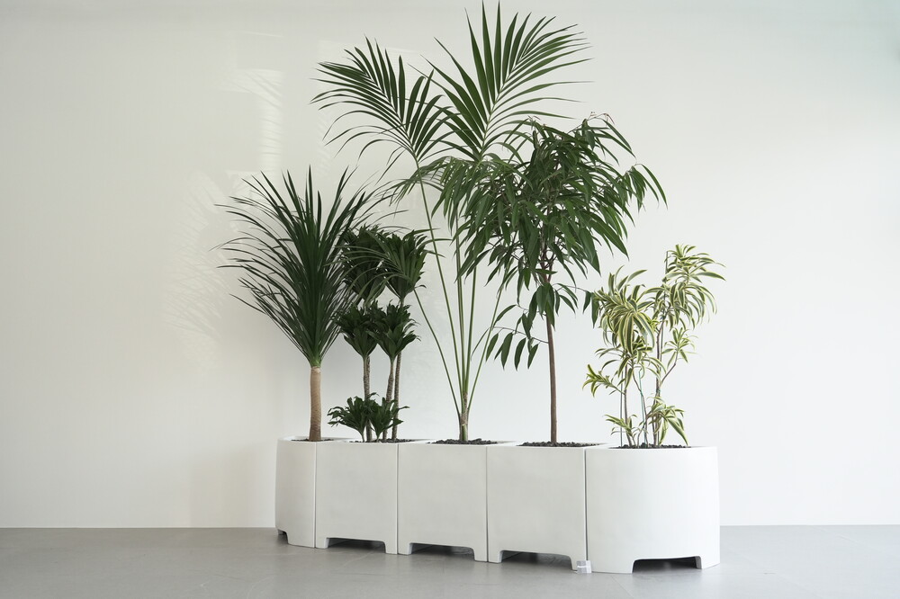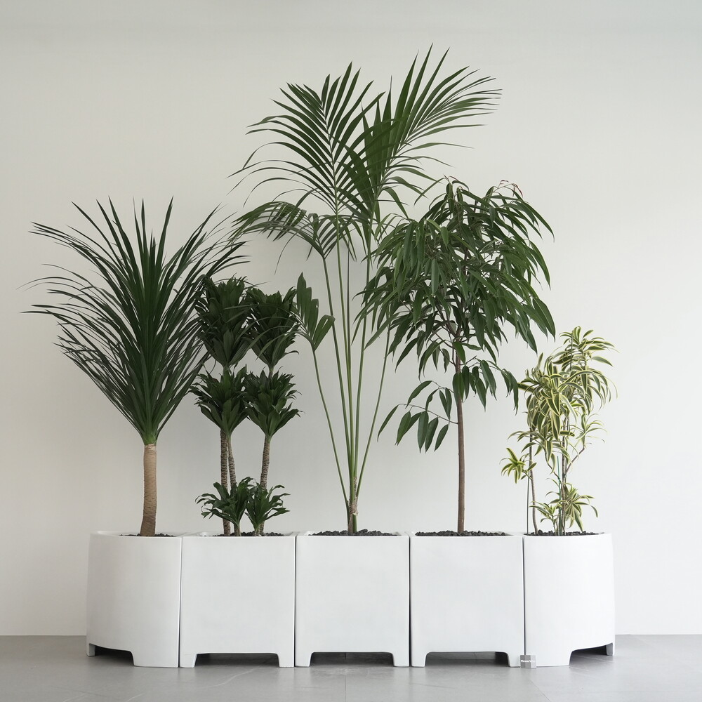 식물 : 드라코,콤팩타,켄차야자,알리고무나무,송오브인디아 / 화분 : 모듈코너형, 모듈사각화분
