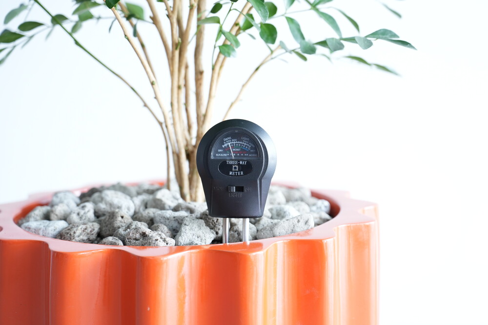 무동력 측정기를 이용하여 현재 화분 속 상태(수분, 산성도/일조량)를 체크해 볼 수 있습니다.