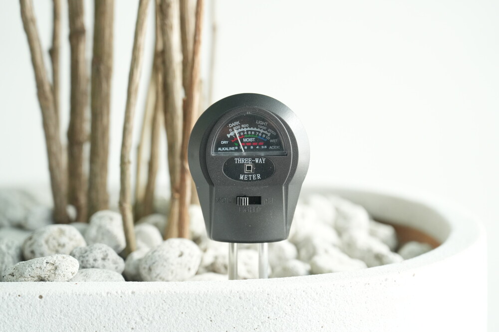 무동력 측정기를 이용하여 현재 화분 속 상태(수분, 산성도/일조량)를 체크해 볼 수 있습니다.