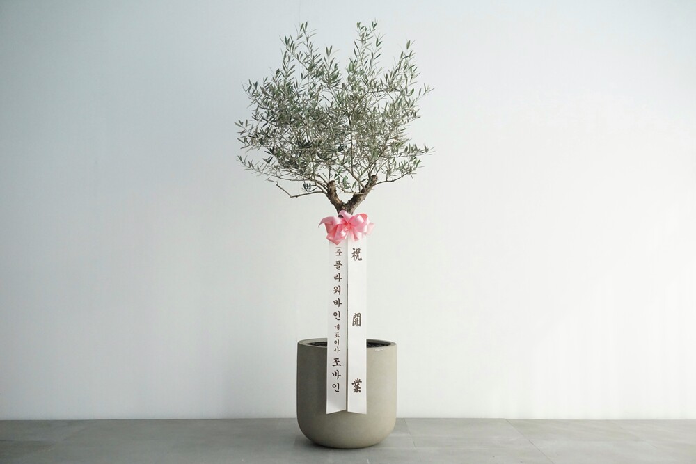 식물 : 올리브나무 / 화분 : 웜 그레이 폴리 라운드 화분