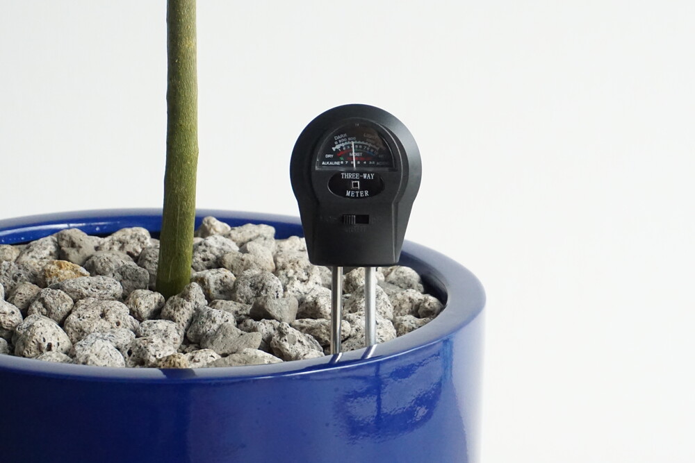 무동력 측정기를 이용하여 현재 화분 속 상태(수분, 산성도/일조량)를 체크해 볼 수 있습니다.