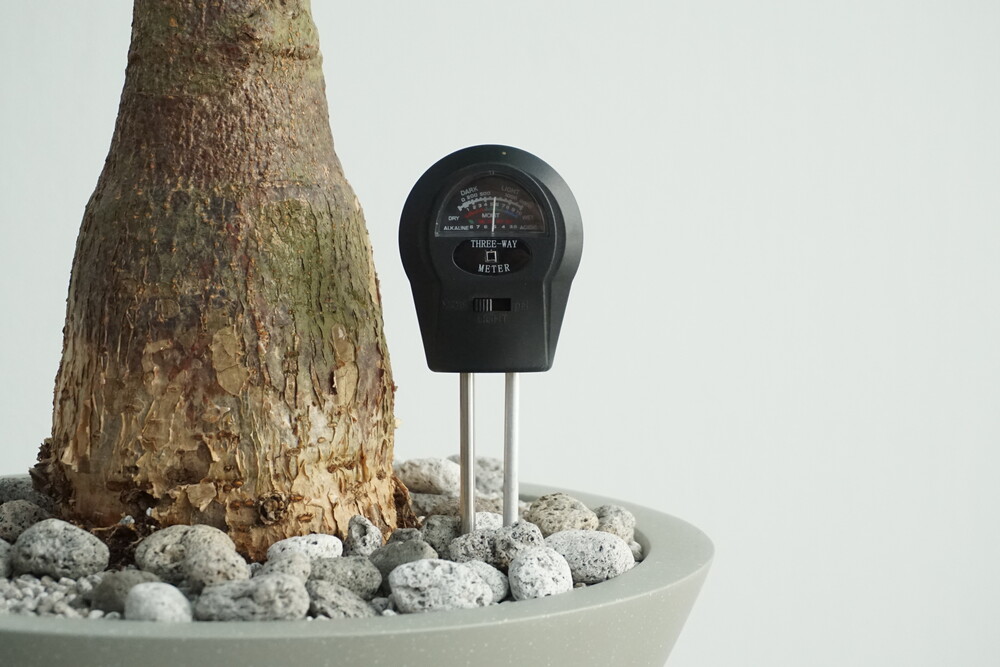 무동력 측정기를 이용하여 현재 화분 속 상태(수분, 산성도/일조량)를 체크해 볼 수 있습니다.