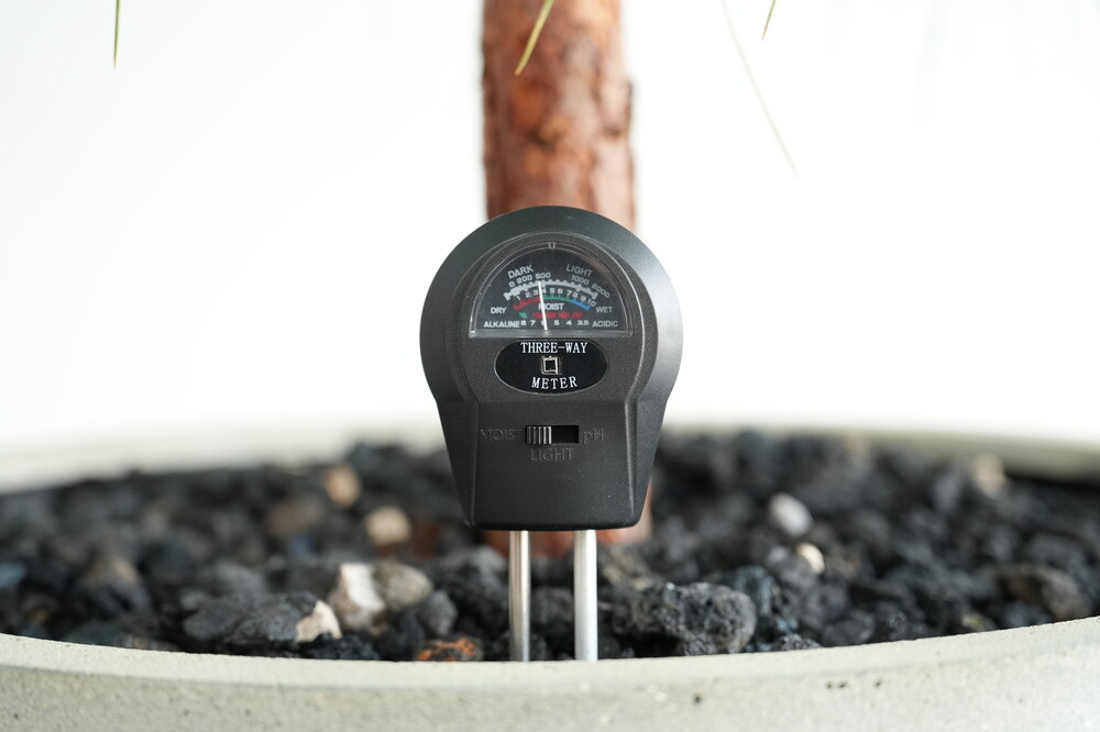 무동력 측정기를 이용하여 현재 화분 속 상태(수분, 산성도/일조량)를 체크해 볼 수 있습니다.