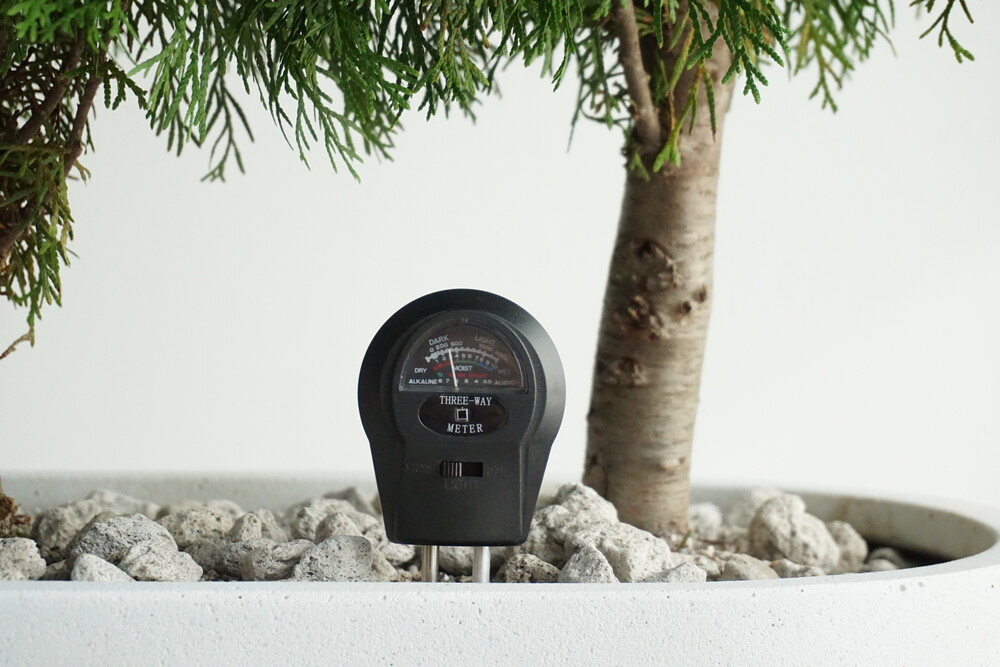 무동력 측정기를 이용하여 현재 화분 속 상태(수분, 산성도/일조량)를 체크해 볼 수 있습니다.