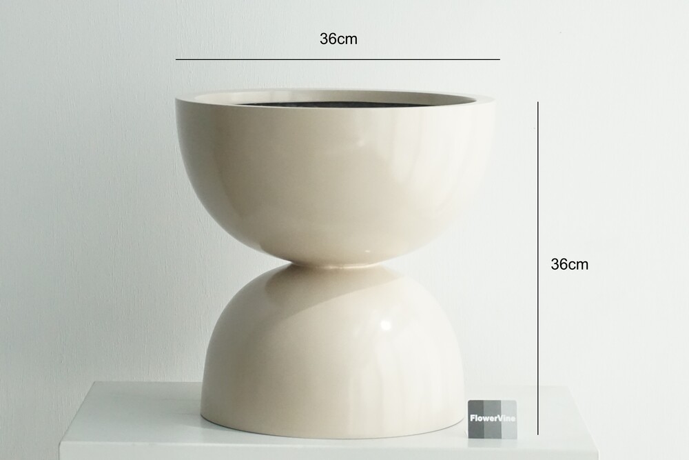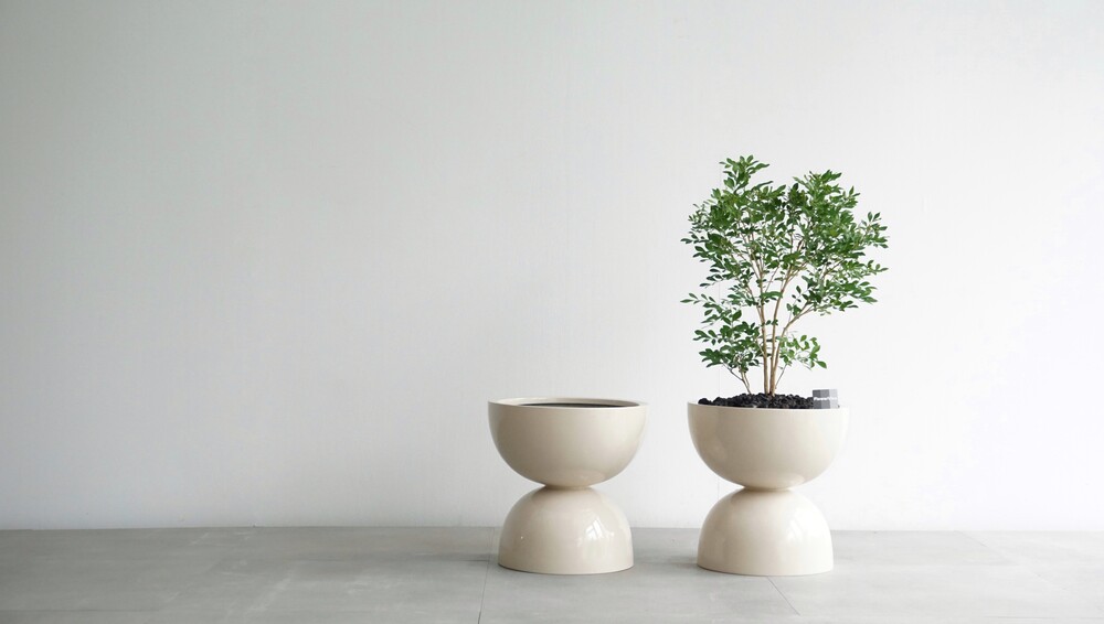 매끈한 유광 표면, 그리고 은은한 베이지 색감의 더블 라운드 화분입니다. 평범하지 않은 트랜디한 화분을 찾으시는 분들께 추천드립니다. 지름 높이 각각 36cm 이며, 총 길이 1m ~ 1.5m 전후의 다양한 크기의 식물을 매칭해 보실 수 있습니다.(화분 구조상 내부 사이즈가 한정되어 있으니 뿌리가 많이 발달된 식물식재는 추천드리지 않습니다.) 화분 소재는 FRP 강화 유리 섬유로 만들어져 강한 내구성과 가벼운 무게가 장점입니다.