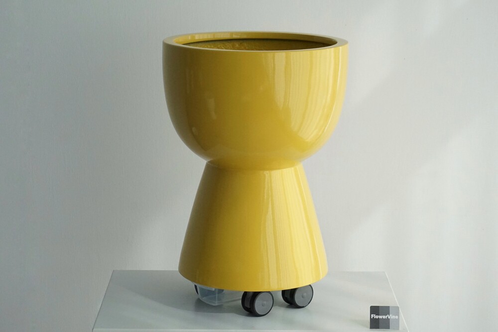 매끈한 유광 옐로우 색감으로, 트랜디한 디자인의 화분을 찾으시는 분들께 추천드립니다. 화분 소재는 FRP 강화 유리 섬유로 만들어져 강한 내구성과 가벼운 무게가 장점입니다.