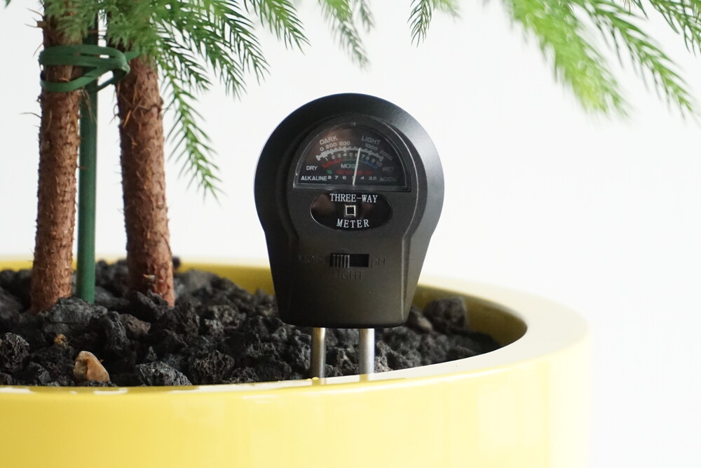 무동력 측정기를 이용하여 현재 화분 속 상태(수분, 산성도/일조량)를 체크해 볼 수 있습니다.