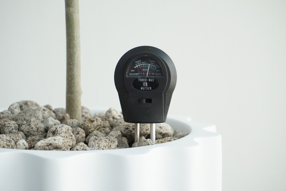 무동력 측정기를 이용하여 현재 화분 속 상태(수분, 산성도/일조량)를 체크해 볼 수 있습니다.