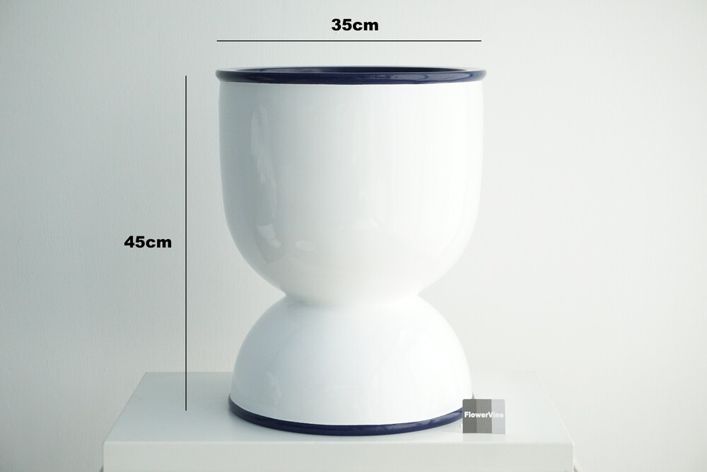 유려한 곡선을 가지고 있는 유광 화이트 바디와 딥블루 컬러의 더블 링 포인트가 더해져 조형적인 아름다움과 실용성을 모두 갖춘 프리미엄 화분입니다. 가볍지만 뛰어난 내구성을 자랑하는 FRP 소재의 화분으로 실내외 다양한 공간에 배치해 보실 수 있습니다.