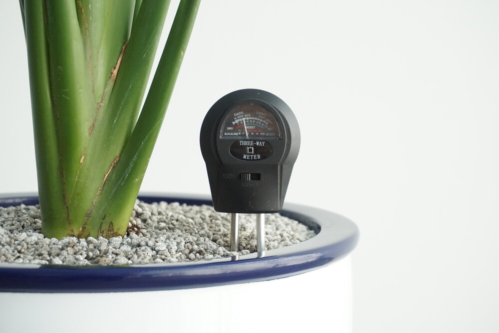 무동력 측정기를 이용하여 현재 화분 속 상태(수분, 산성도/일조량)를 체크해 볼 수 있습니다.