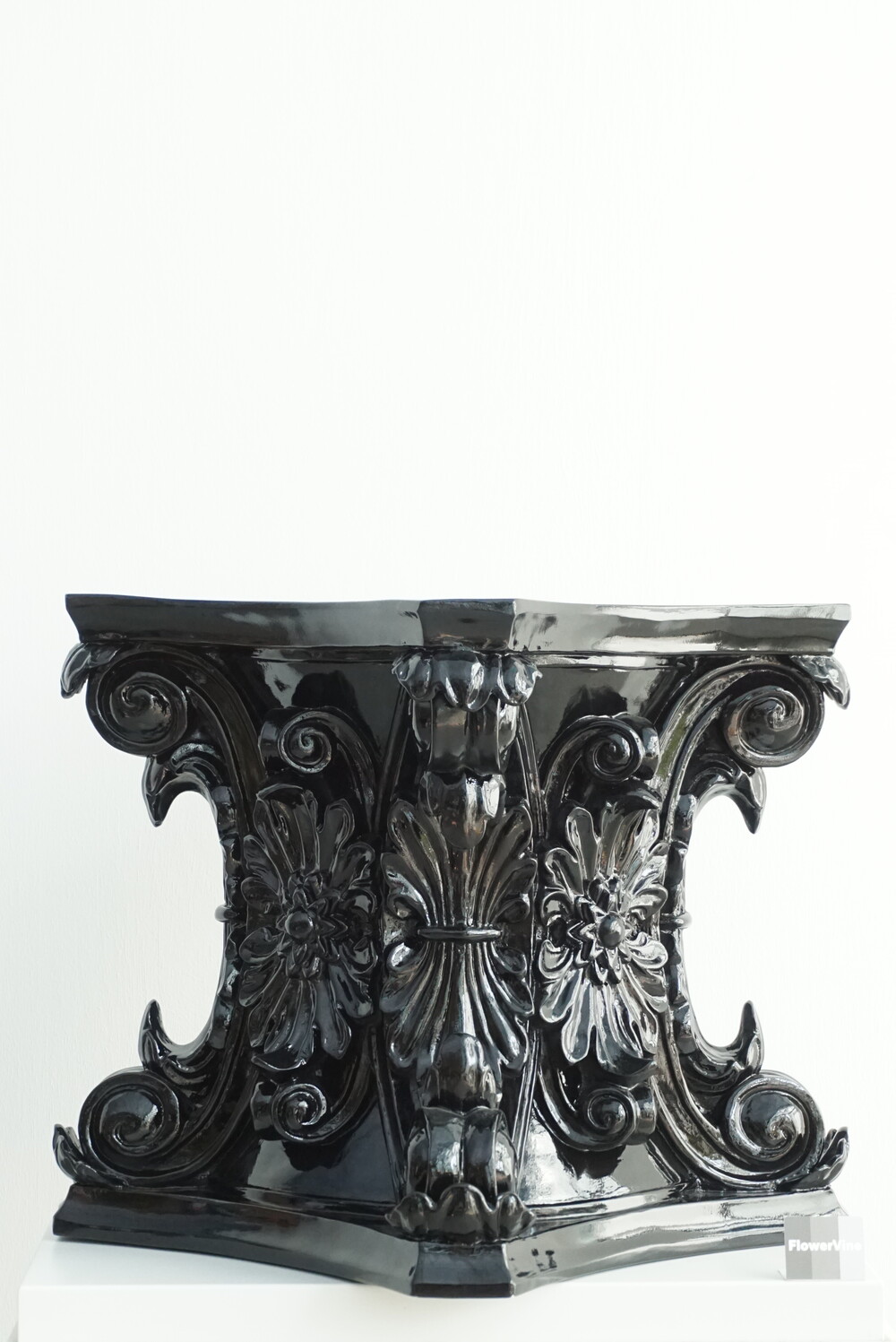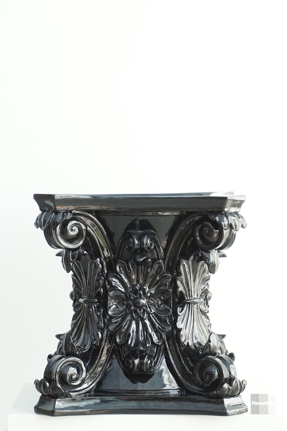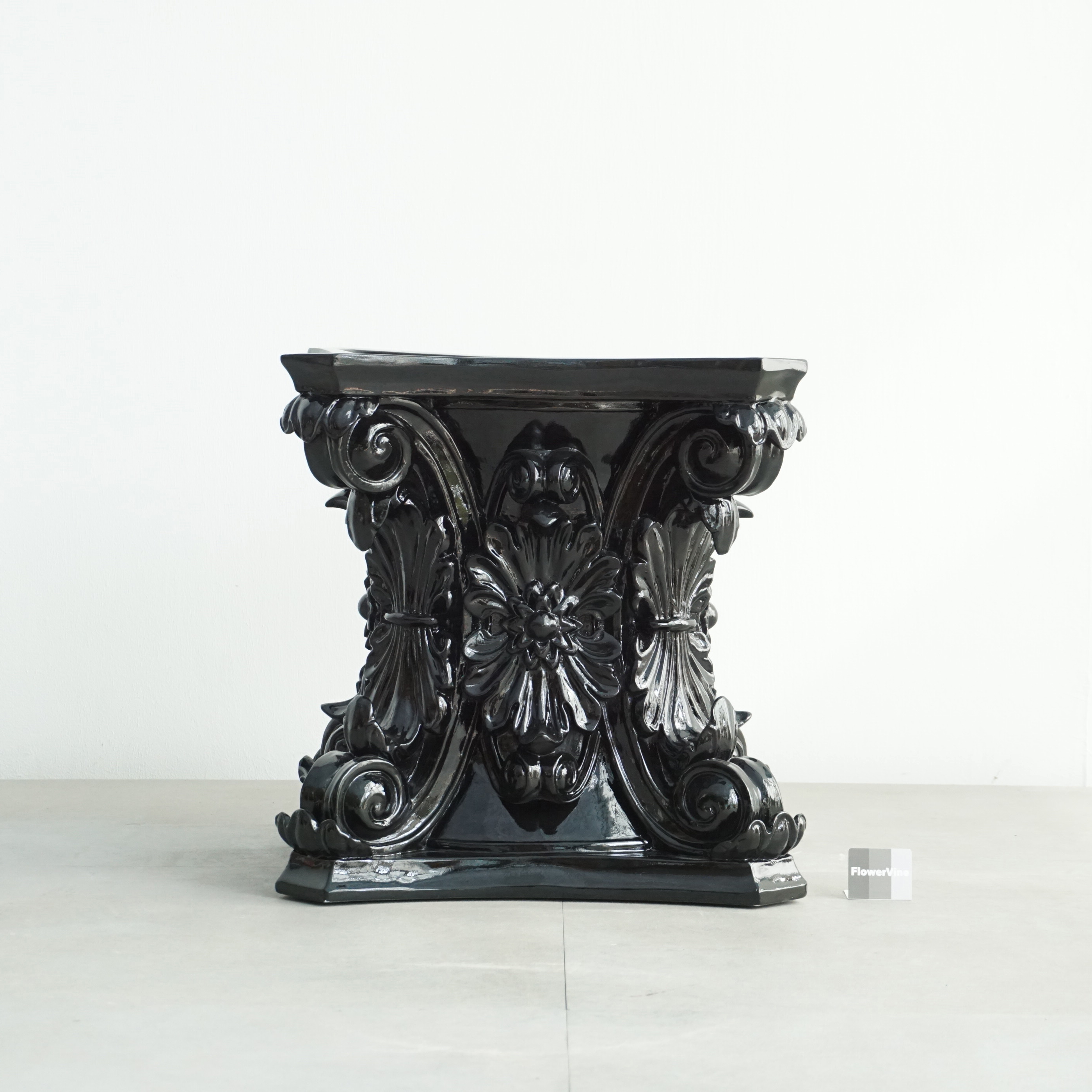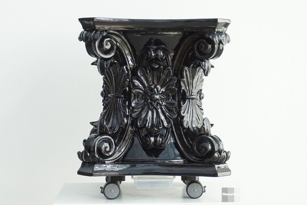 고대 로마 기둥 양식에서 영감을 받은 코린트 화분은 화려한 잎 장식과 정교한 곡선미를 그대로 담아냈습니다. 깊이감 있는 유광 블랙 마감으로 빛의 각도에 따라 조각의 디테일을 드라마틱하게 살려주며, 모던하고 럭셔리한 분위기를 완성합니다. 식물의 싱그러운 초록빛과 대비되는 강렬한 블랙의 조화는 여러분의 거실, 로비, 혹은 정원을 품격 있는 갤러리로 변화시킬 것입니다. 전통의 우아함과 현대의 시크함이 만난 특별한 오브제를 경험해 보세요.