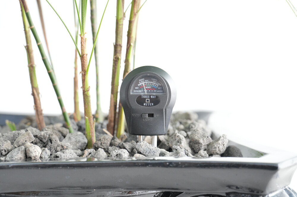 무동력 측정기를 이용하여 현재 화분 속 상태(수분, 산성도/일조량)를 체크해 볼 수 있습니다.