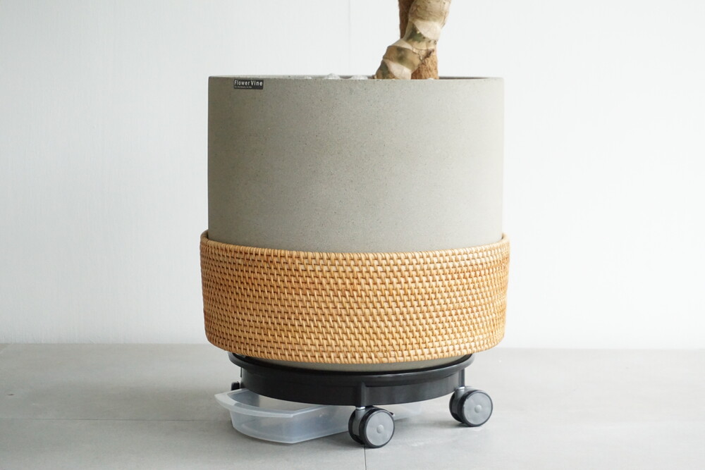1.4m 종려죽 대형 웜그레이 폴리라운드 라탄커버화분