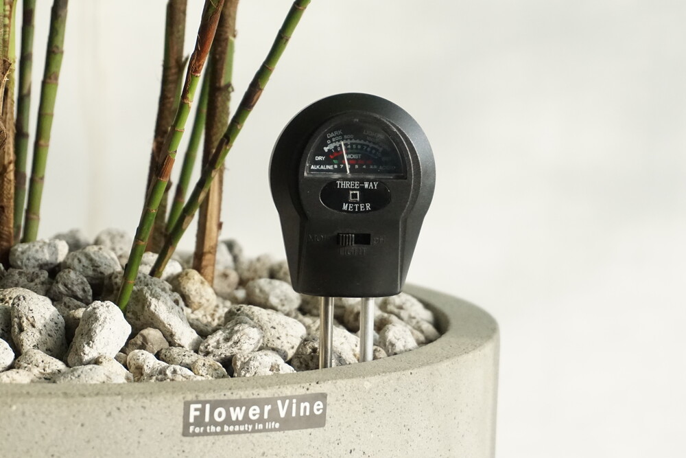 무동력 측정기를 이용하여 현재 화분 속 상태(수분, 산성도/일조량)를 체크해 볼 수 있습니다.