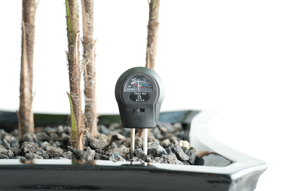 무동력 측정기를 이용하여 현재 화분 속 상태(수분, 산성도/일조량)를 체크해 볼 수 있습니다.