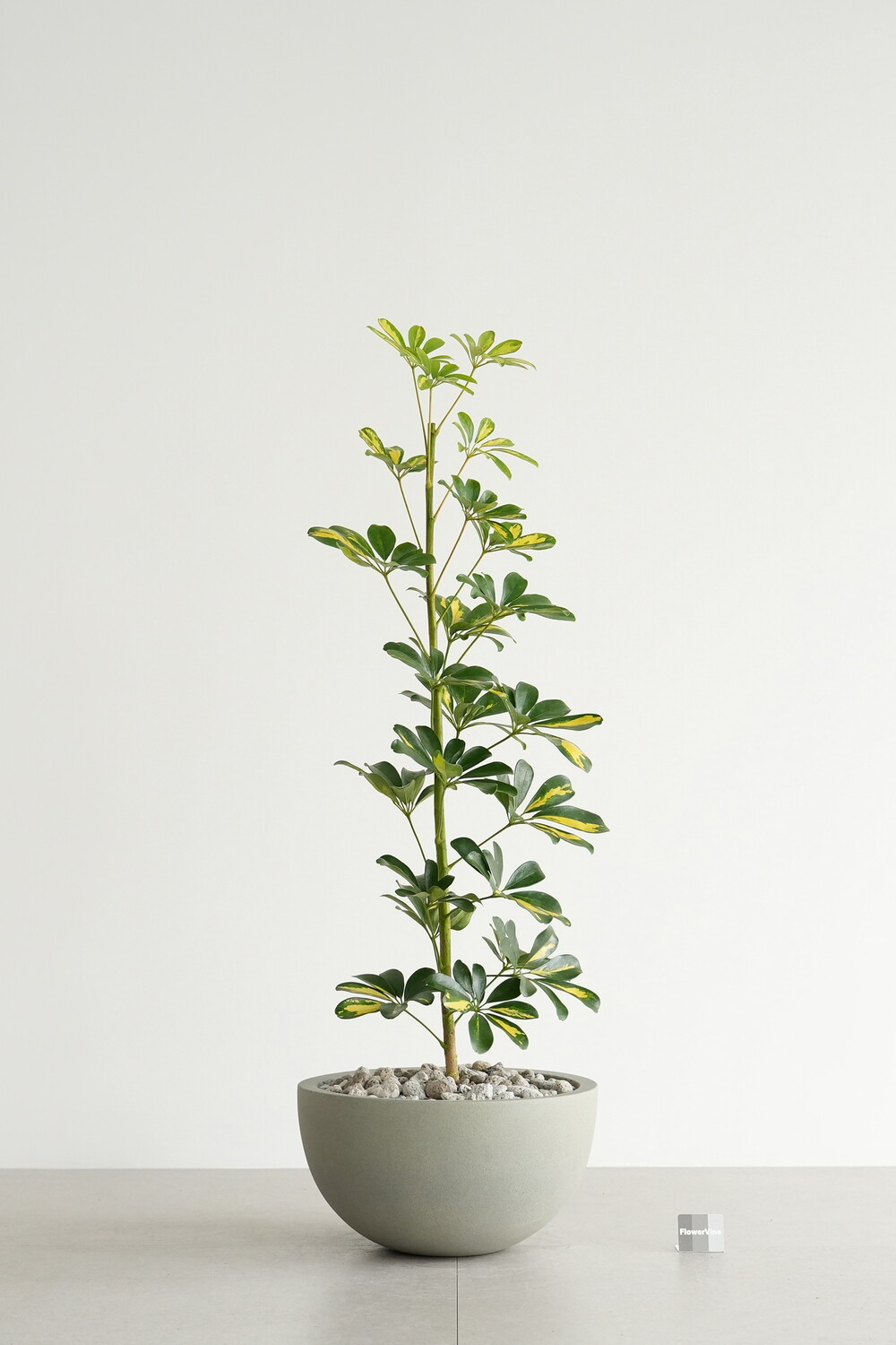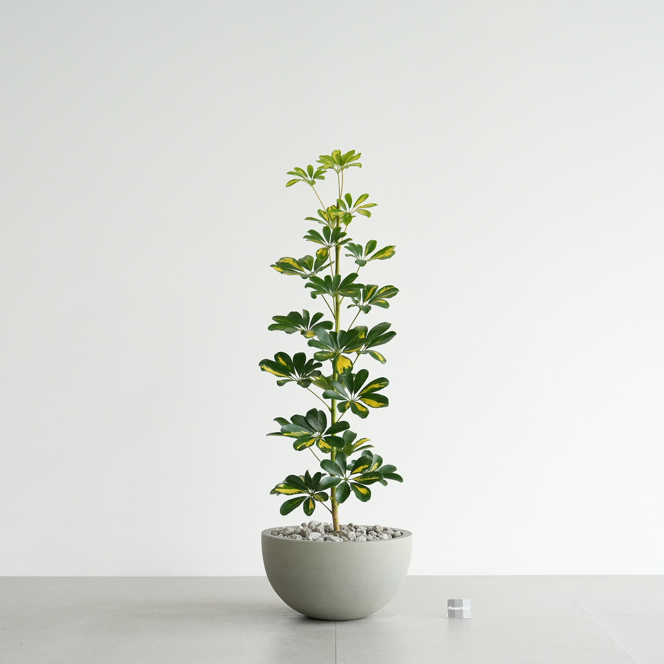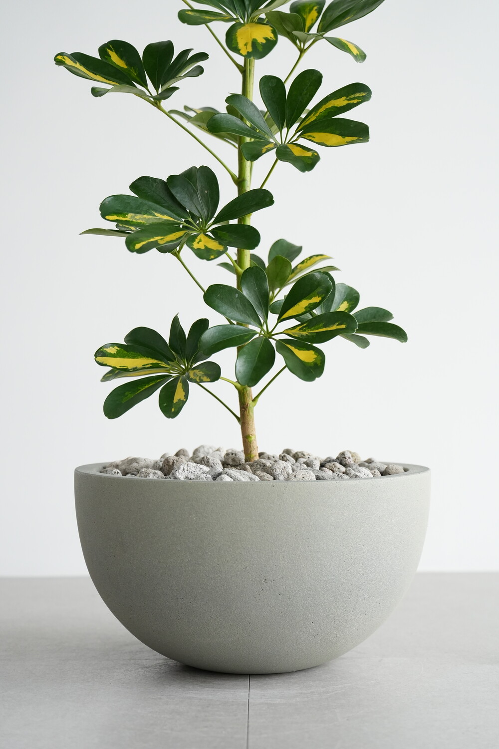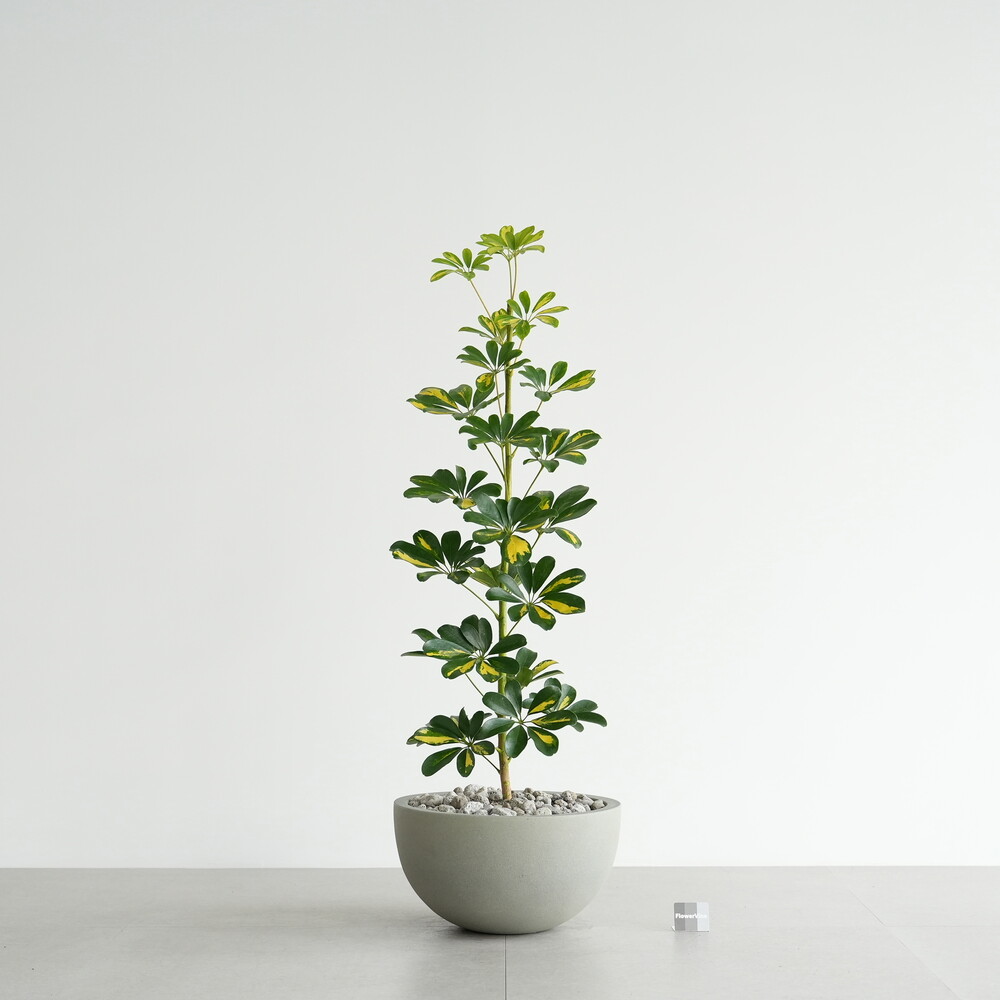 식물 : 무늬 홍콩야자나무 / 화분 : 빈티지 그레이 하프 라운드화분