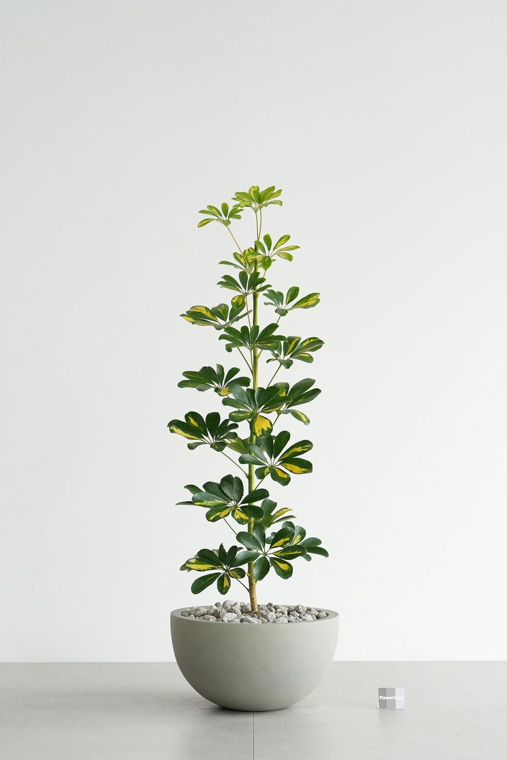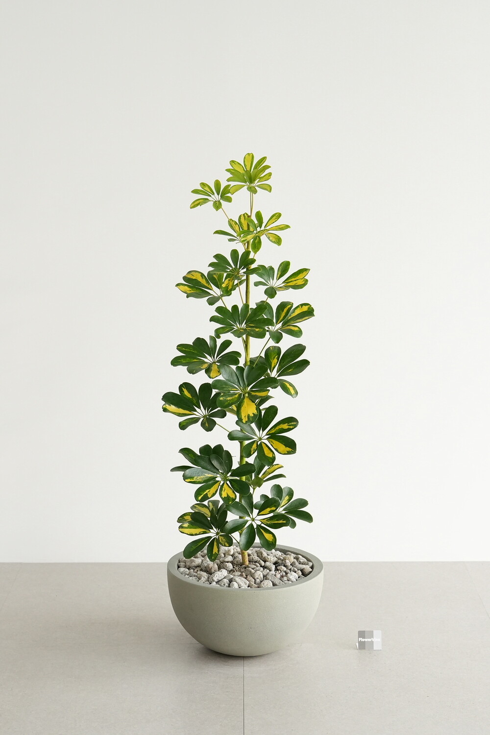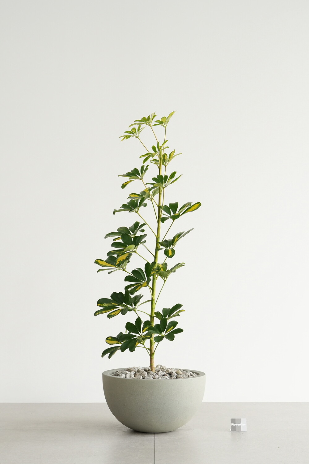 식물 : 무늬 홍콩야자나무 / 화분 : 빈티지 그레이 하프 라운드화분