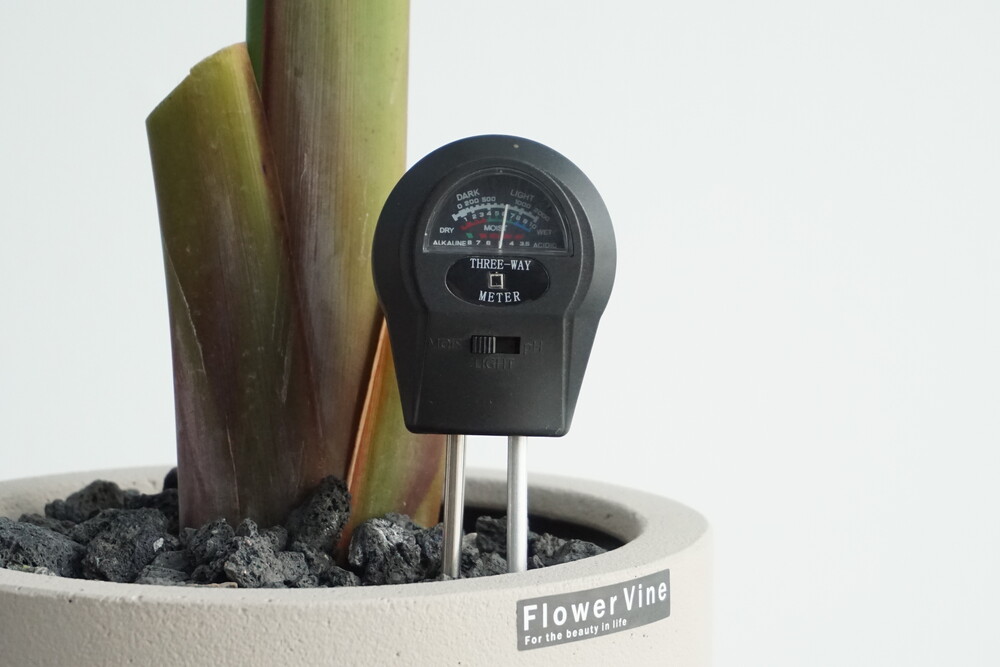 무동력 측정기를 이용하여 현재 화분 속 상태(수분, 산성도/일조량)를 체크해 볼 수 있습니다.