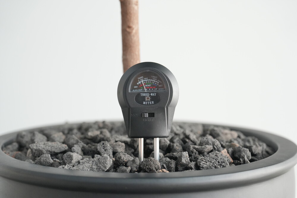 무동력 측정기를 이용하여 현재 화분 속 상태(수분, 산성도/일조량)를 체크해 볼 수 있습니다.