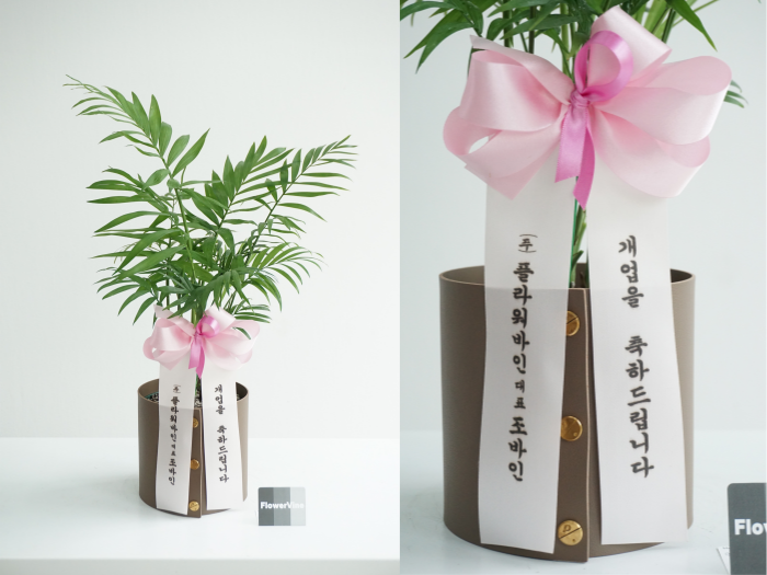 - 옵션에서 리본을 선택하고 원하시는 문구를 작성해 주세요. (좌 : 보내는 사람 / 우 : 문구)