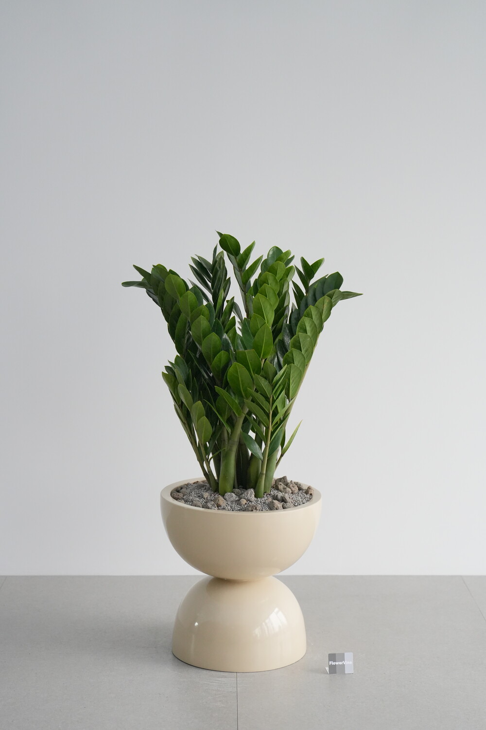 식물 : 금전수 / 화분 : 베이지 더블 라운드화분