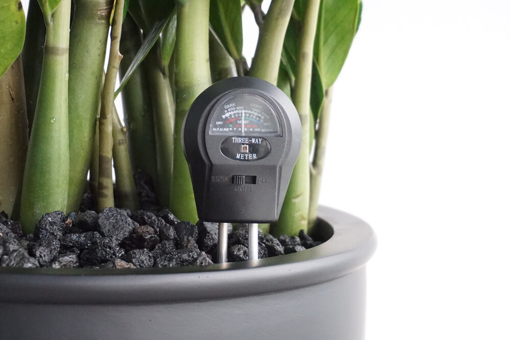 무동력 측정기를 이용하여 현재 화분 속 상태(수분, 산성도/일조량)를 체크해 볼 수 있습니다.