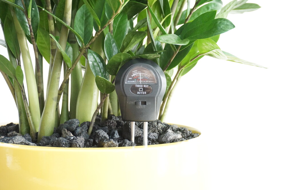 무동력 측정기를 이용하여 현재 화분 속 상태(수분, 산성도/일조량)를 체크해 볼 수 있습니다.